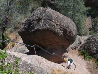 Up on that mountain, I had to think hard. I thought over the trail we’d just climbed. We’d huffed and puffed up the Condor Trail (no condors to be seen), then wound our way around and up the side of the mountain. We had to clamber up and down steep rocky bits lined with poison oak. And Central California in May is already hot like summertime; we’d started hiking at 8 that morning in shirt sleeves, and the day wasn’t getting any cooler. The trail was on the west side of the hill where the afternoon sun would be blazing. Did I really want to descend the mountain using the same trail I’d ascended?