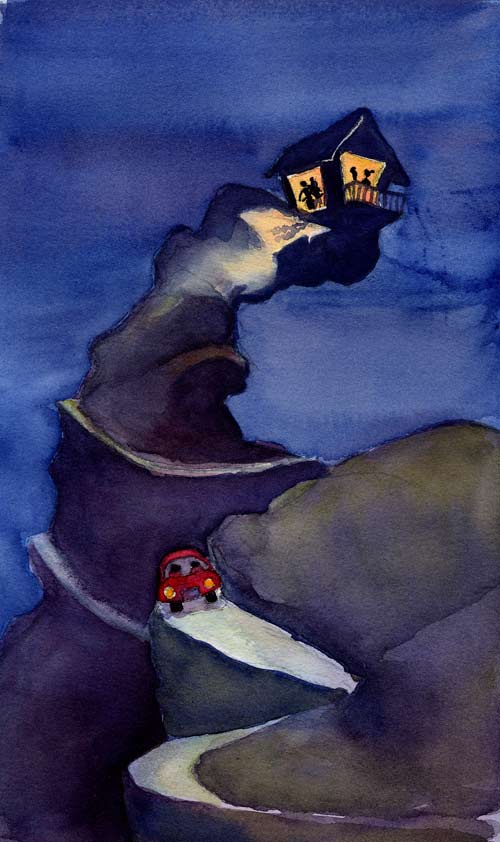 That night, we made it to the top of the mountain just fine, despite my trembling and shaking and shouting “Watch out! We’ll go over the edge!” The mathematician, who was driving, was not amused.