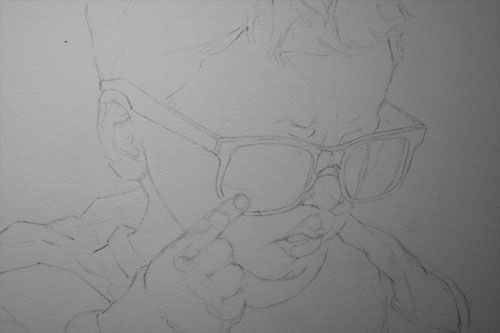 And this is part of the final drawing. I spend a stupid amount of time on drawing—nearly 12 hours for this piece. But while I’m drawing, I’m also planning the painting, thinking about what I want to do. Where will I lose edges, where will I find them? How will I place the value pattern? How will I apply the paint?