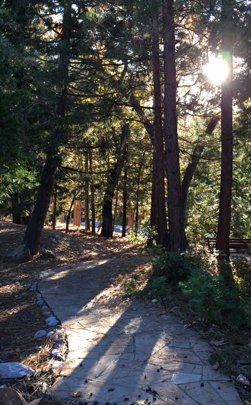 In the morning I leave the living space of the house and walk down a little path through cedars and sugar pines to get to the studio door under the house. During that short walk, I make a transition from being at home to being at work. I’m able to set my intentions for the day during that brief time in the outdoors.