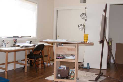 I’ve been asking my artist friends to participate in the Saturday Studio Time project, so I thought I’d better post my own thoughts about my personal studio too. Studios are so personal and private; I’m eternally grateful to the artists who have agreed to shed their natural inclination to shun publicity and offer a glimpse of their working spaces.