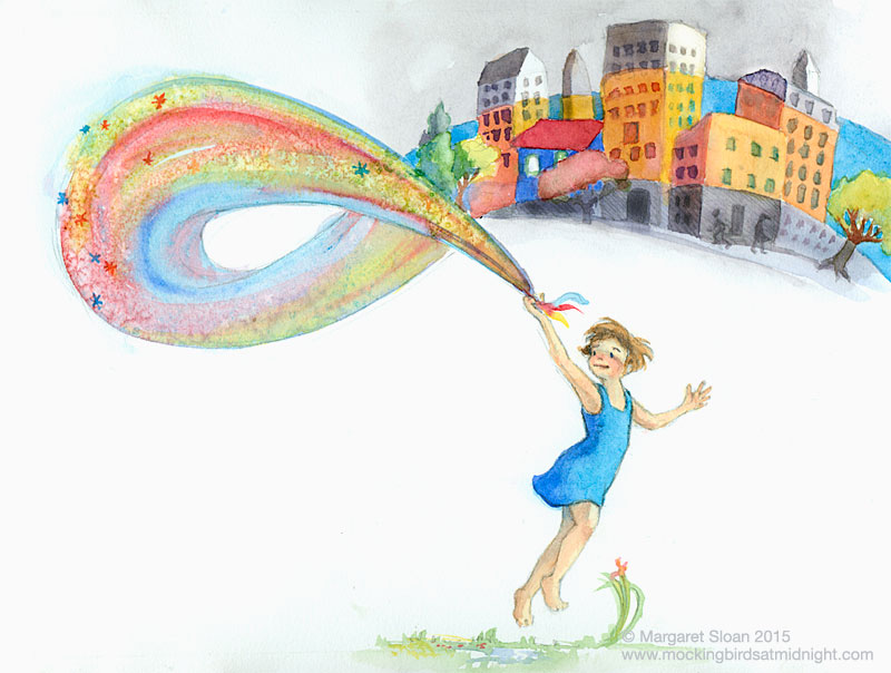 This weekend I was thinking of the Hindu celebration of Holi (See some wonderful photos of the holiday here), then I started thinking about all my dear ones buried under who-knows-how-many feet of snow and ice. Then I started thinking about Persephone and the myth of spring, and although I don’t subscribe to child marriages, the image of her as a little girl popped out of my brush.