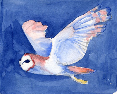 Sometimes restrictions upon artwork conversely allow you more freedom. With only four colors available to my paintbrush, I first spent a lot of time playing around, figuring out how those paints would mix. Then I planned the painting—colors and temperatures of the shadows and the highlights. Only then did I start splashing on paint.