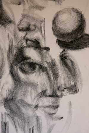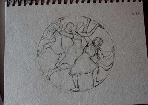 If you click on this sketch, you’ll be able to see a blurry bit on the fiddler’s chin (also not my fiddler) where my pennywhistle dripped moisture as I played a tune over the half finished drawing. Although the pen was a Pigma Micron, and supposedly waterproof, I guess it’s not immune to pennywhistle drool.