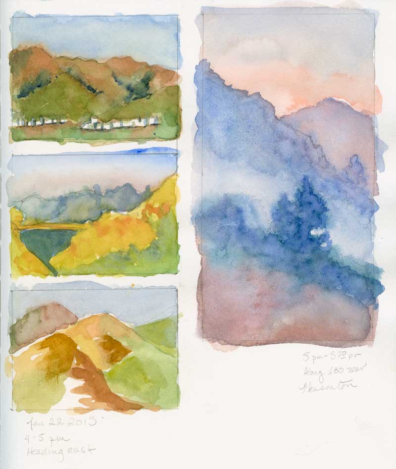 After our walk in the woods, Susan went off to photograph more ladybugs and I dragged out my easel and paint box. I painted the watercolor at the top of this post, trying to capture the feeling and the colors of the day.