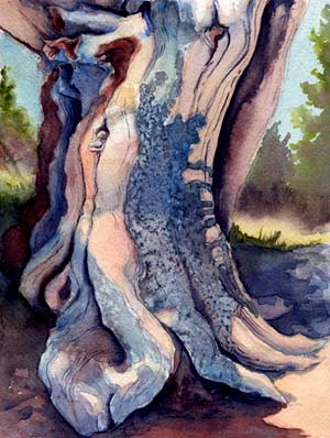 This summer I got to meet the bristlecone pines of Great Basin National Park in Nevada. They live precariously above 10,000 feet between rock and sky. The oldest have been there on the mountain for thousands of years. Some have only a thin strip of bark sheltering a living cambial layer; only that bit of xylem and phloem spirals up the dead part of the trunk to the branches that are still alive.